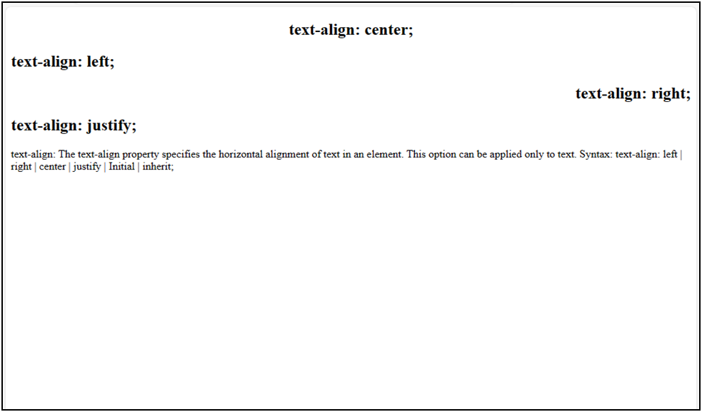Syntax: white-space: normal| nowrap| pre| pre-line| pre-wrap| break-spaces| initial| inherit;